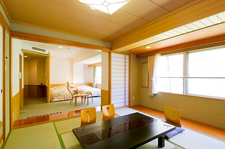 Offering free toiletries, this twin room includes a private bathroom with a bath, a shower and a hairdryer. The spacious air-conditioned twin room offers a flat-screen TV with satellite channels, tatami, a seating area, a wardrobe as well as mountain views. The unit offers 2 beds and 3 futons.